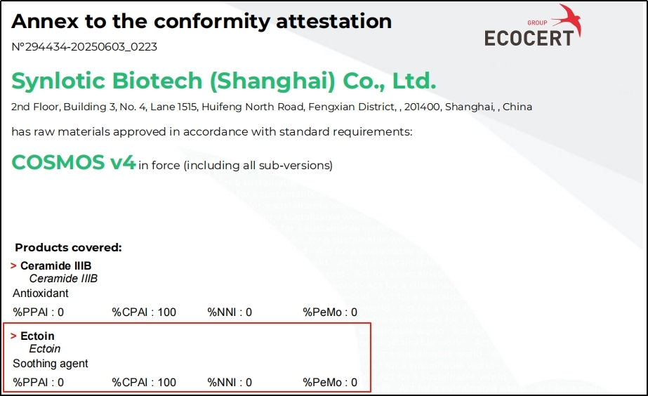 حال ہی میں ، شنگھائی یونلو کے ذریعہ تیار کردہ Yikeduoyin نے فرانس میں ECOCERT کے ذریعہ EU Cosmos قدرتی سند حاصل کی ہے۔